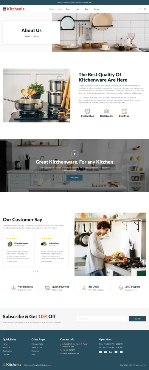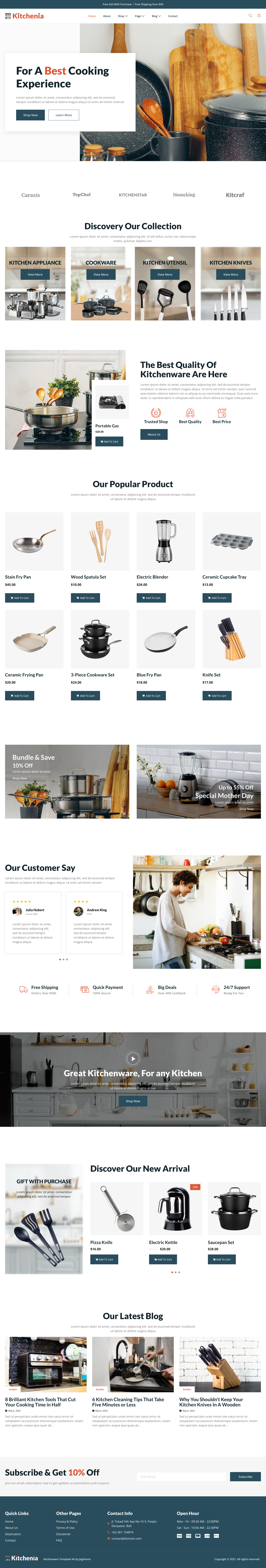 This Website is perfect for creating a website for Kitchenware, Kitchen Appliance, and Kitchen Utensil stores website without a single line of coding!. This website has a beautiful and unique design with a 100% responsive layout & retina-ready and very easy to customize.