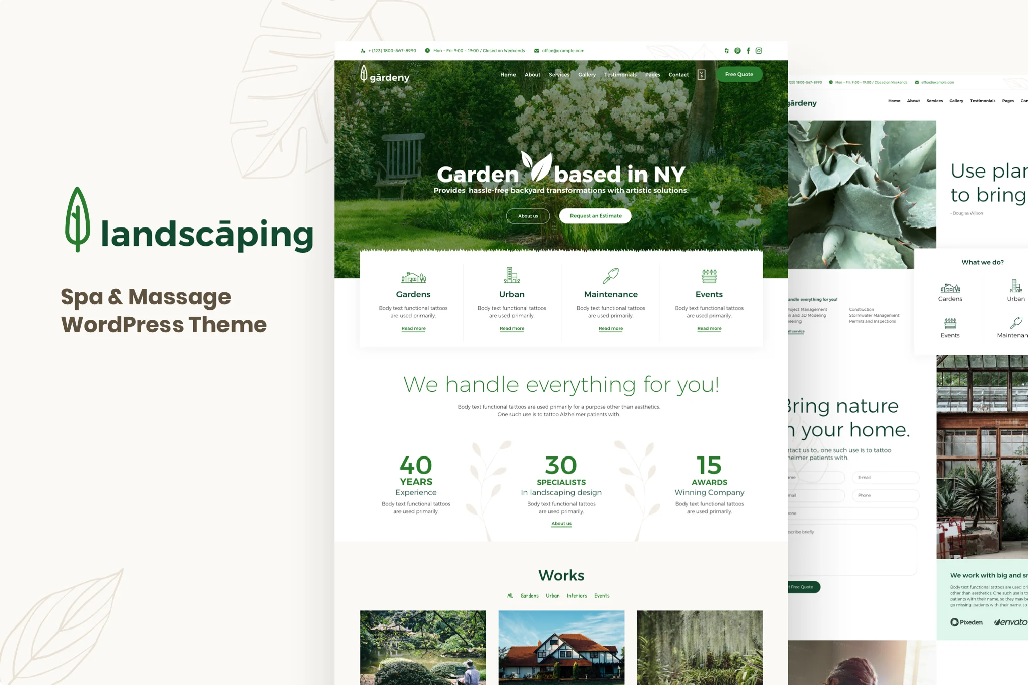 This Website is perfect for ย any business in the Landscaping and Gardening industry. Florists, Landscape Architects, Gardeners, Landscapers, Groundskeepers, or other Landscaping and Gardening-related businesses, this is your theme.ย This website has a beautiful and unique design with a 100% responsive layout & retina-ready and very easy to customize.