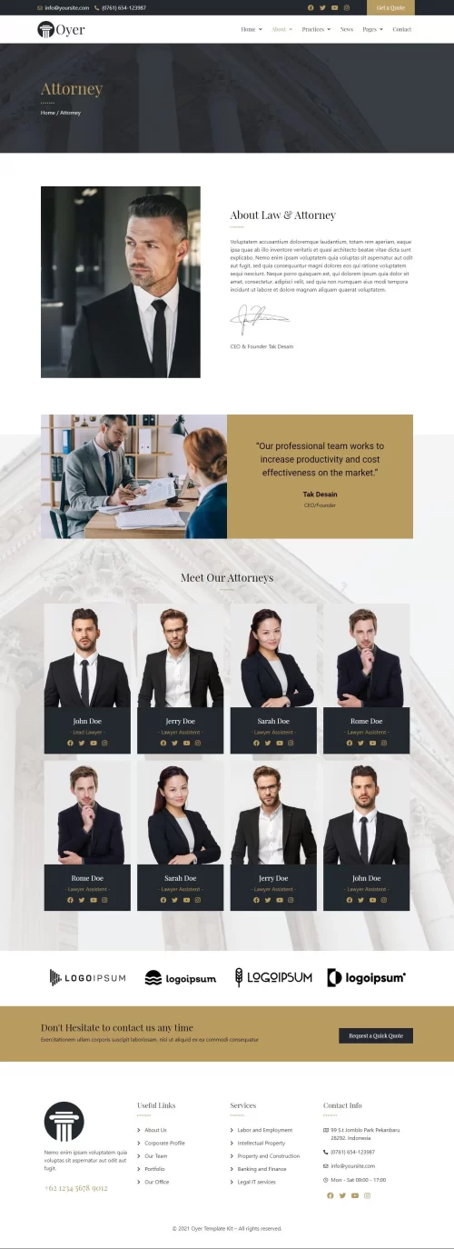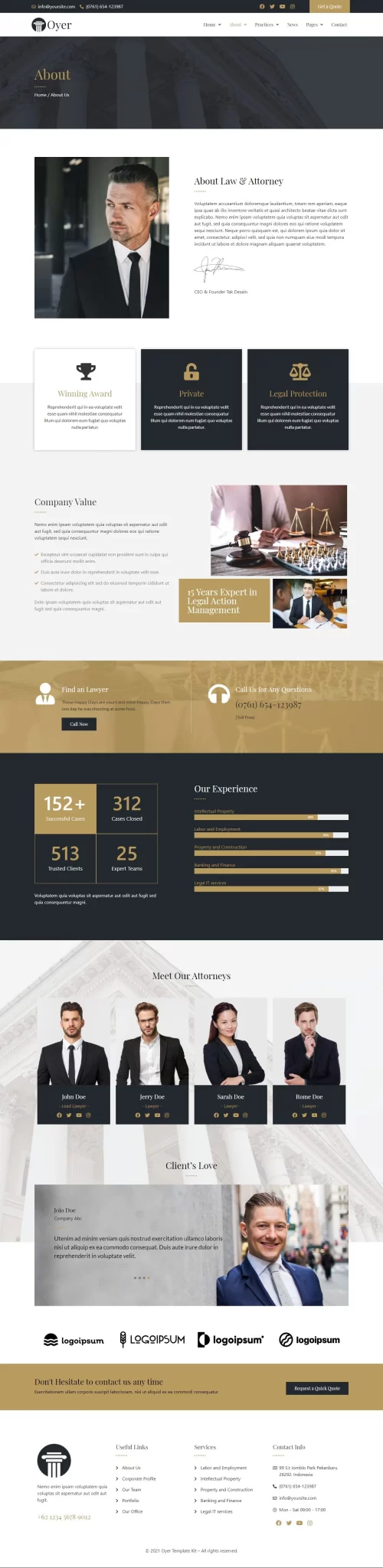 This Website for creating a website for attorneys, lawyers, law firms, and legal professionals. This website has a beautiful and unique design with a 100% responsive layout & retina-ready and very easy to customize.