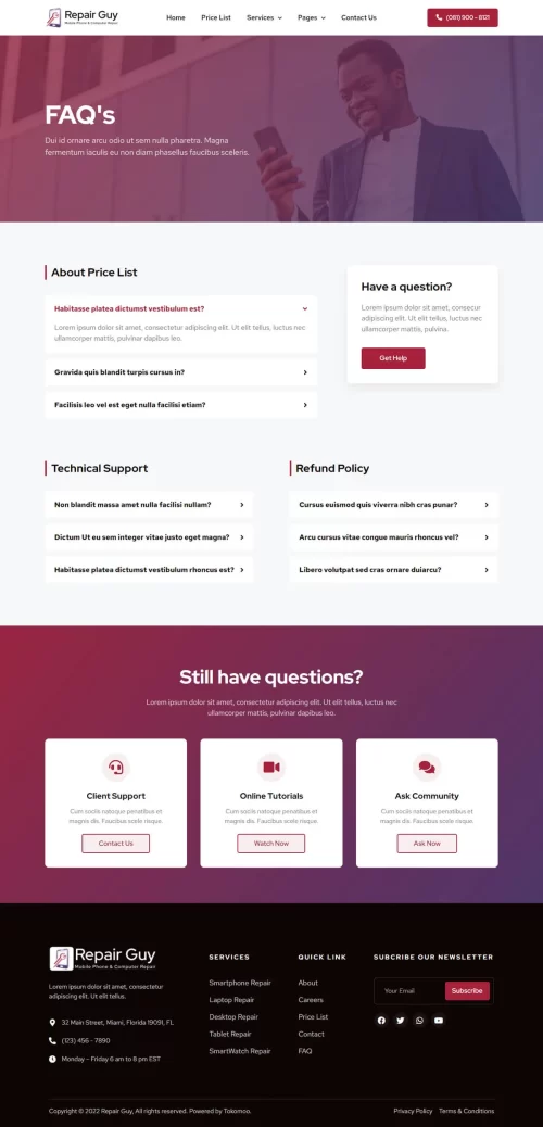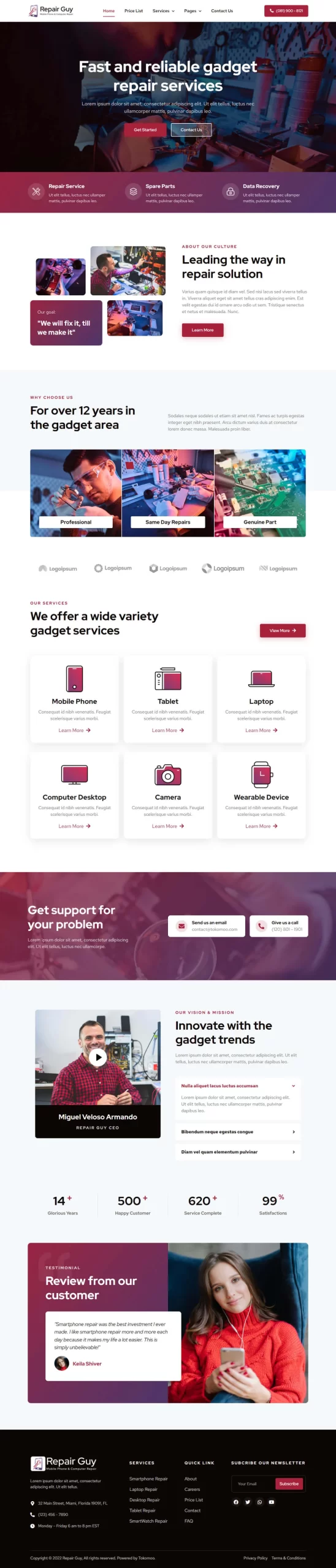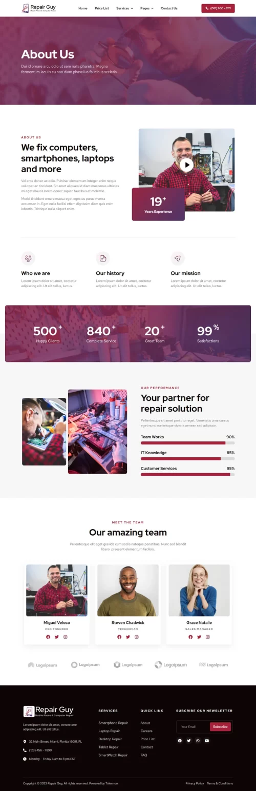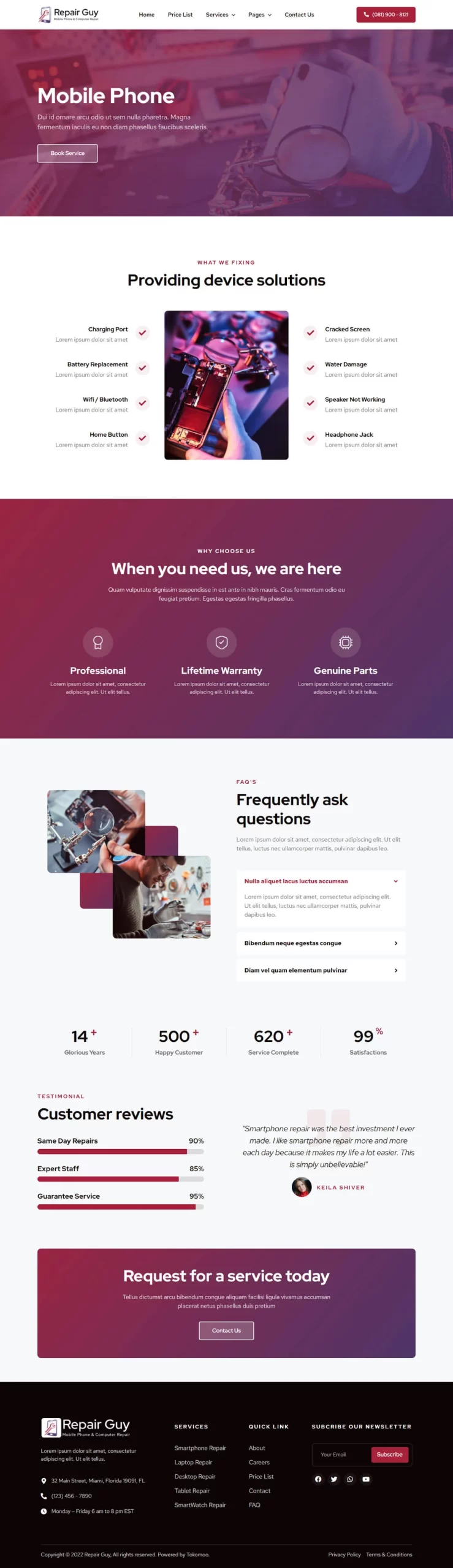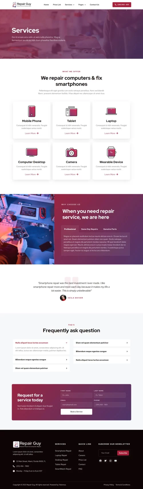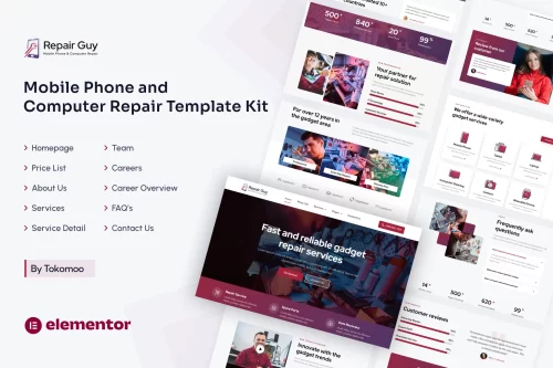 This Website is perfect for mobile phone & computer repair website.ย This website has a beautiful and unique design with a 100% responsive layout & retina-ready and very easy to customize.