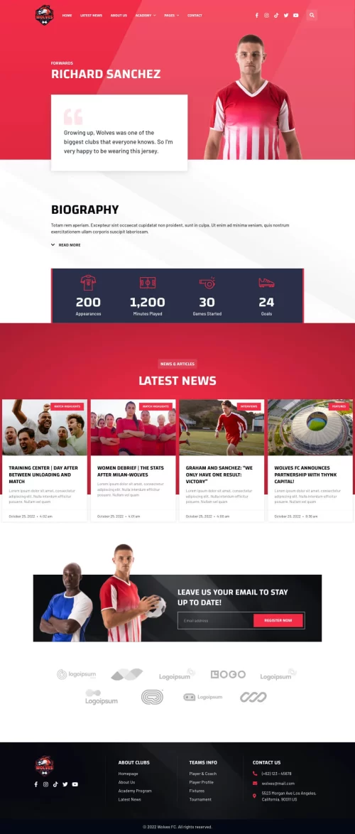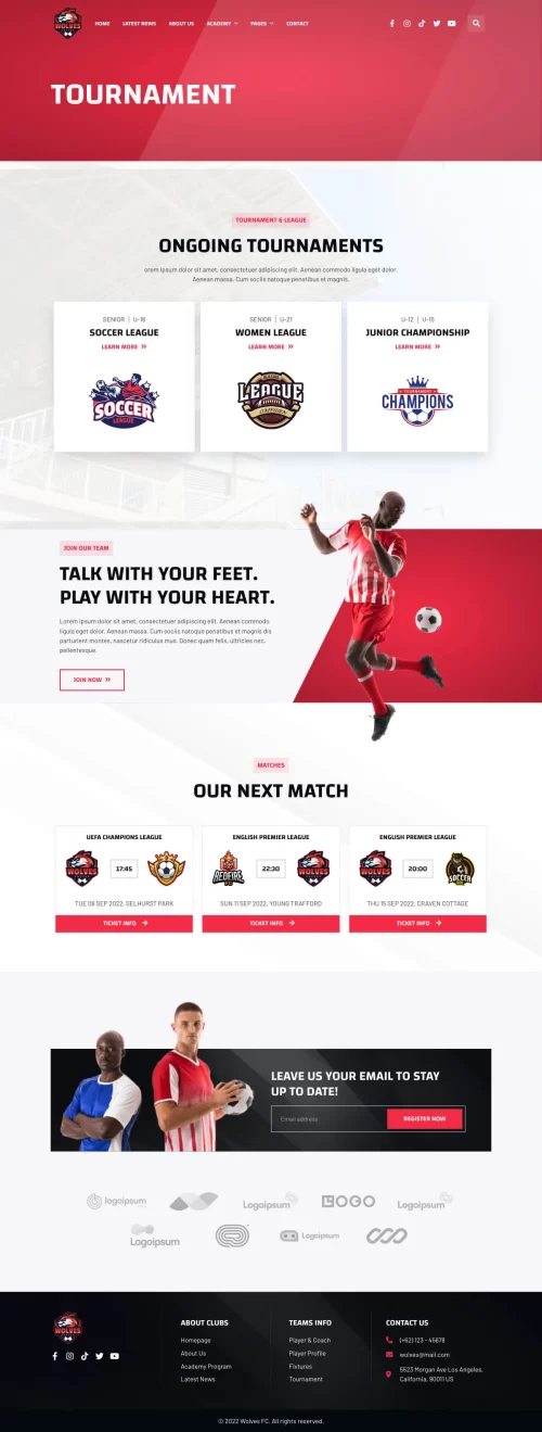 This Website for creating a website for your Soccer or Football Club, Football School, Soccer Academy, or any kind of sports team website. This website has a beautiful and unique design with a 100% responsive layout & retina-ready and very easy to customize.